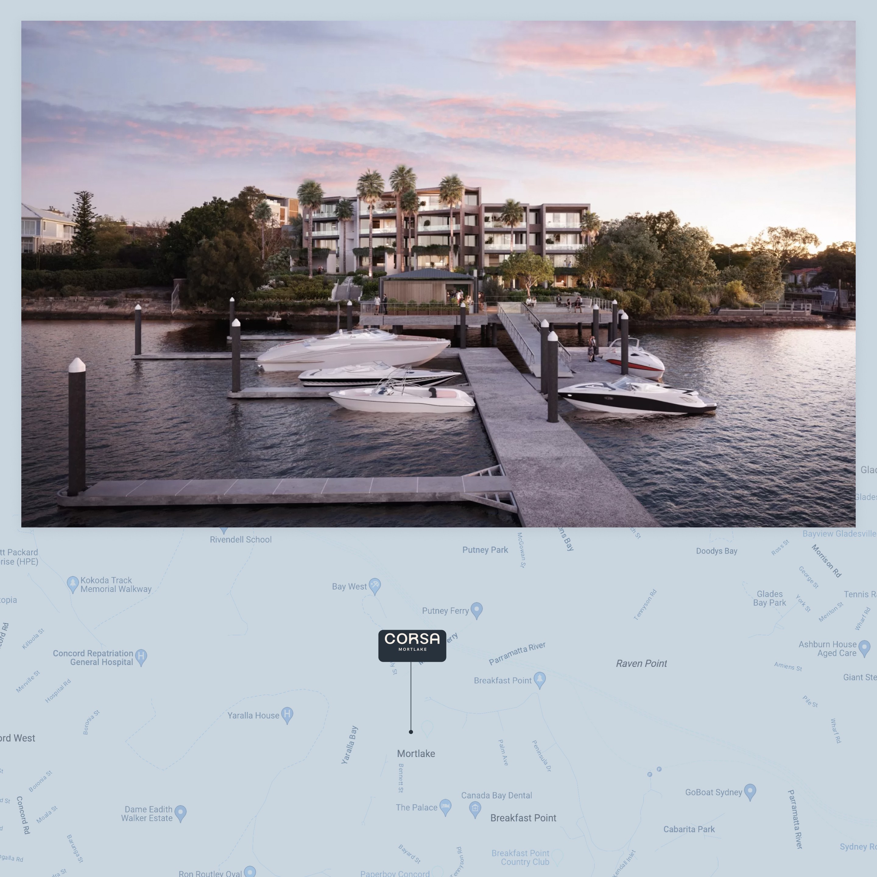 Corsa Mortlake is a limited collection of 20 three-bedroom apartments on the Mortlake waterfront in Sydney’s inner West. Corsa is a MADE development featuring carefully crafted architecture and interiors by SJB and landscapes by Dangar Barin Smith.